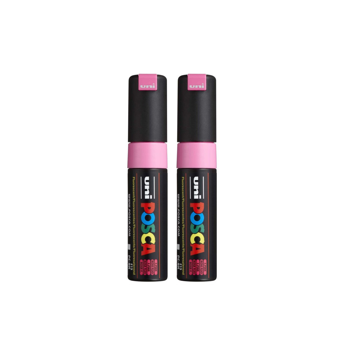 Create bold, high-impact marks with the POSCA PC-8K Paint Markers, Broad Chisel Tip (8 mm), Fluorescent Pink. Designed for large-scale artwork, lettering, murals, and expressive mixed-media applications, these markers deliver rich, opaque color on nearly any surface, including paper, canvas, wood, plastic, metal, glass, stone, ceramic, and fabric. The 8 mm chisel tip provides dynamic line variation, offering both wide coverage and sharp, clean edges, making it ideal for posters, signage, backgrounds, and graphic illustration. POSCA’s water-based, quick-drying paint applies smoothly, dries to a matte finish, and resists smudging and fading. The valve-controlled ink system ensures consistent paint flow, and the durable tip can be reversed or replaced for extended use. Whether in the studio, classroom, or creative workspace, PC-8K markers offer reliable, vibrant performance for artists who want bold strokes and confident color. Sold as a pack of 2.