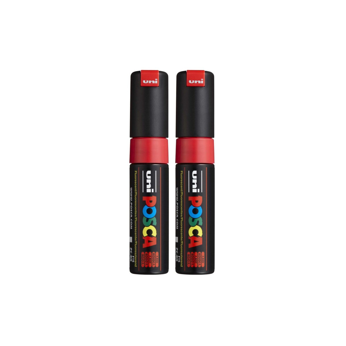 Create bold, high-impact marks with the POSCA PC-8K Paint Markers, Broad Chisel Tip (8 mm), Fluorescent Red. Designed for large-scale artwork, lettering, murals, and expressive mixed-media applications, these markers deliver rich, opaque color on nearly any surface, including paper, canvas, wood, plastic, metal, glass, stone, ceramic, and fabric. The 8 mm chisel tip provides dynamic line variation, offering both wide coverage and sharp, clean edges, making it ideal for posters, signage, backgrounds, and graphic illustration. POSCA’s water-based, quick-drying paint applies smoothly, dries to a matte finish, and resists smudging and fading. The valve-controlled ink system ensures consistent paint flow, and the durable tip can be reversed or replaced for extended use. Whether in the studio, classroom, or creative workspace, PC-8K markers offer reliable, vibrant performance for artists who want bold strokes and confident color. Sold as a pack of 2.