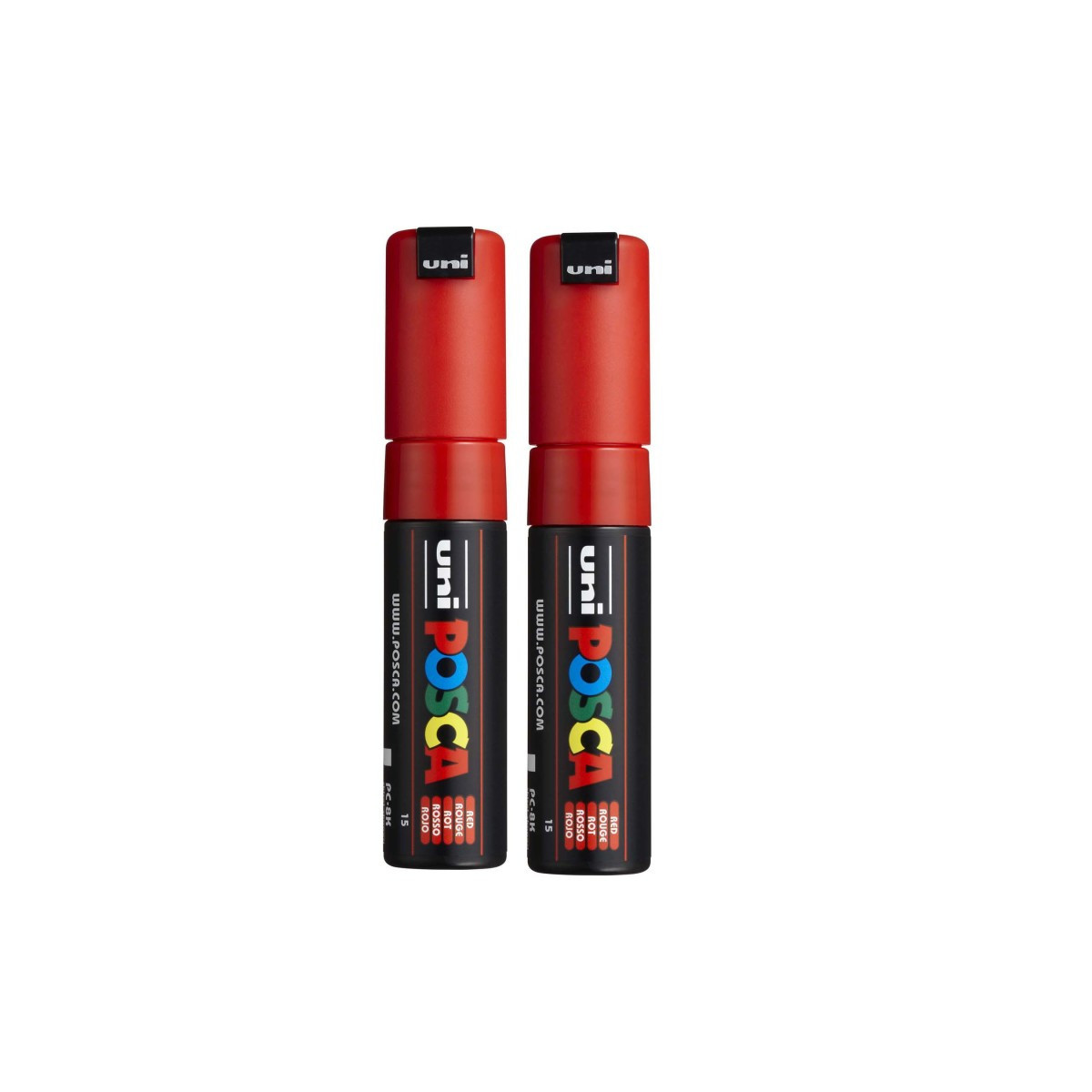 Create bold, high-impact marks with the POSCA PC-8K Paint Markers, Broad Chisel Tip (8 mm), Red. Designed for large-scale artwork, lettering, murals, and expressive mixed-media applications, these markers deliver rich, opaque color on nearly any surface, including paper, canvas, wood, plastic, metal, glass, stone, ceramic, and fabric. The 8 mm chisel tip provides dynamic line variation, offering both wide coverage and sharp, clean edges, making it ideal for posters, signage, backgrounds, and graphic illustration. POSCA’s water-based, quick-drying paint applies smoothly, dries to a matte finish, and resists smudging and fading. The valve-controlled ink system ensures consistent paint flow, and the durable tip can be reversed or replaced for extended use. Whether in the studio, classroom, or creative workspace, PC-8K markers offer reliable, vibrant performance for artists who want bold strokes and confident color. Sold as a pack of 2.