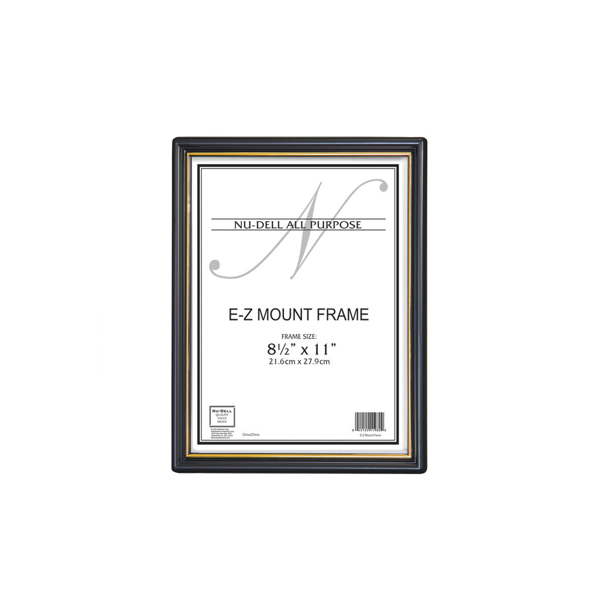 Nudell e-z mount quick insert frames are the ideal professional solution for documents, photos, diplomas, certifications and more. Hang on walls and mount with ease. Simple slide-in allows documents to be installed with no tools or folding tabs. Clear plastic face keeps documents protected and visible. Black plastic frame with accents provide a classic and professional way to showcase accomplishments in any office, classroom, or home workspace. Display area measures 8.5 x 11 inches.