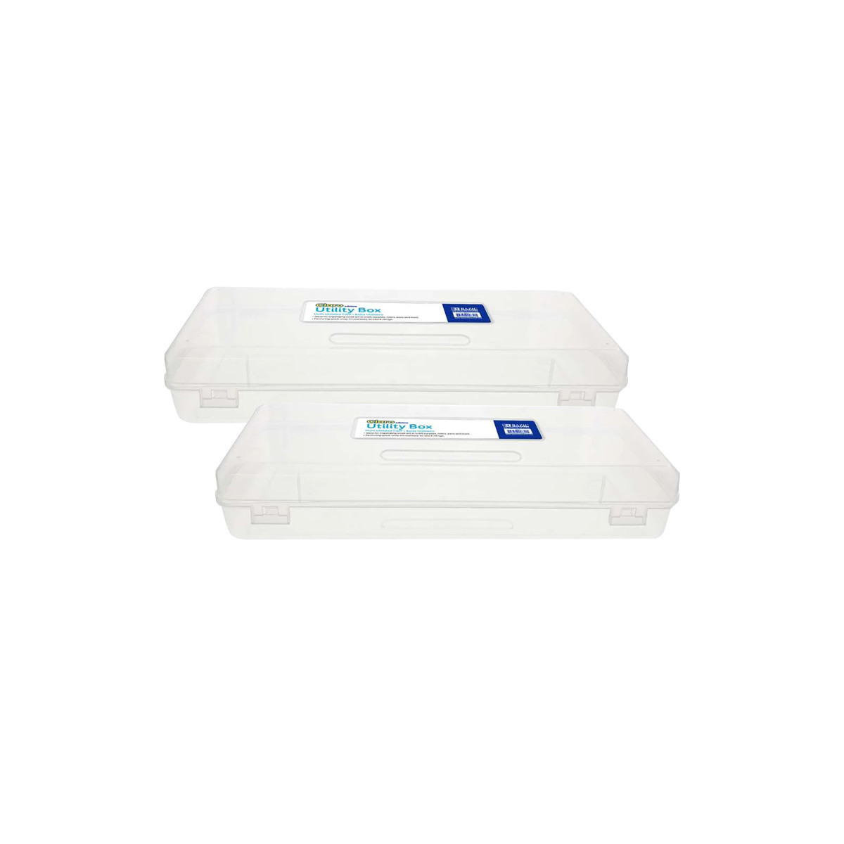 Keep your supplies organized and your workspace clutter-free with these ruler-length utility boxes, designed for ultimate functionality and convenience. Measuring 13.25″ x 4.75″ x 2.5″, each box is made from BPA-free, non-toxic PP plastic and features a secure snap-lid closure for easy access and safe storage. The stackable lid design allows for neat vertical organization, saving valuable space whether you're storing them in a drawer, backpack, or on a shelf. With a transparent finish, you can easily see what's inside without opening the box—ideal for students, teachers, crafters, or professionals. Perfect for storing school supplies, art tools, and small everyday essentials, these boxes make organization simple and stylish. Sold as a pack of 2.