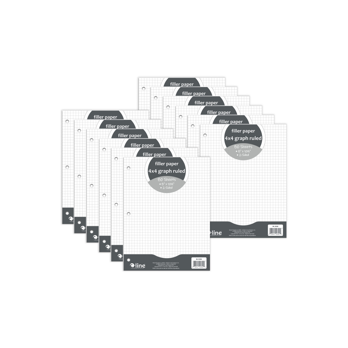 Graph Ruled Filler Paper lets you create graphs, charts, drawings or simply take notes in binders and folders. The 4 x 4 graph ruling provides a guide for your drawings and notetaking. 3-hole punch makes it easy to add paper to standard 3-ring binders. Perfect for students and professionals, these durable pages can be used to draw and record charts, graphs and more. Graph ruled format, bright white paper allows for neat drawing and writing. Pages measure 8" x 10-1/2" in size so they can easily be inserted in all letter-size folders, files, and binders. 3-hole punched for binders. Sold as 12 packs with each pack containing 80 sheets.