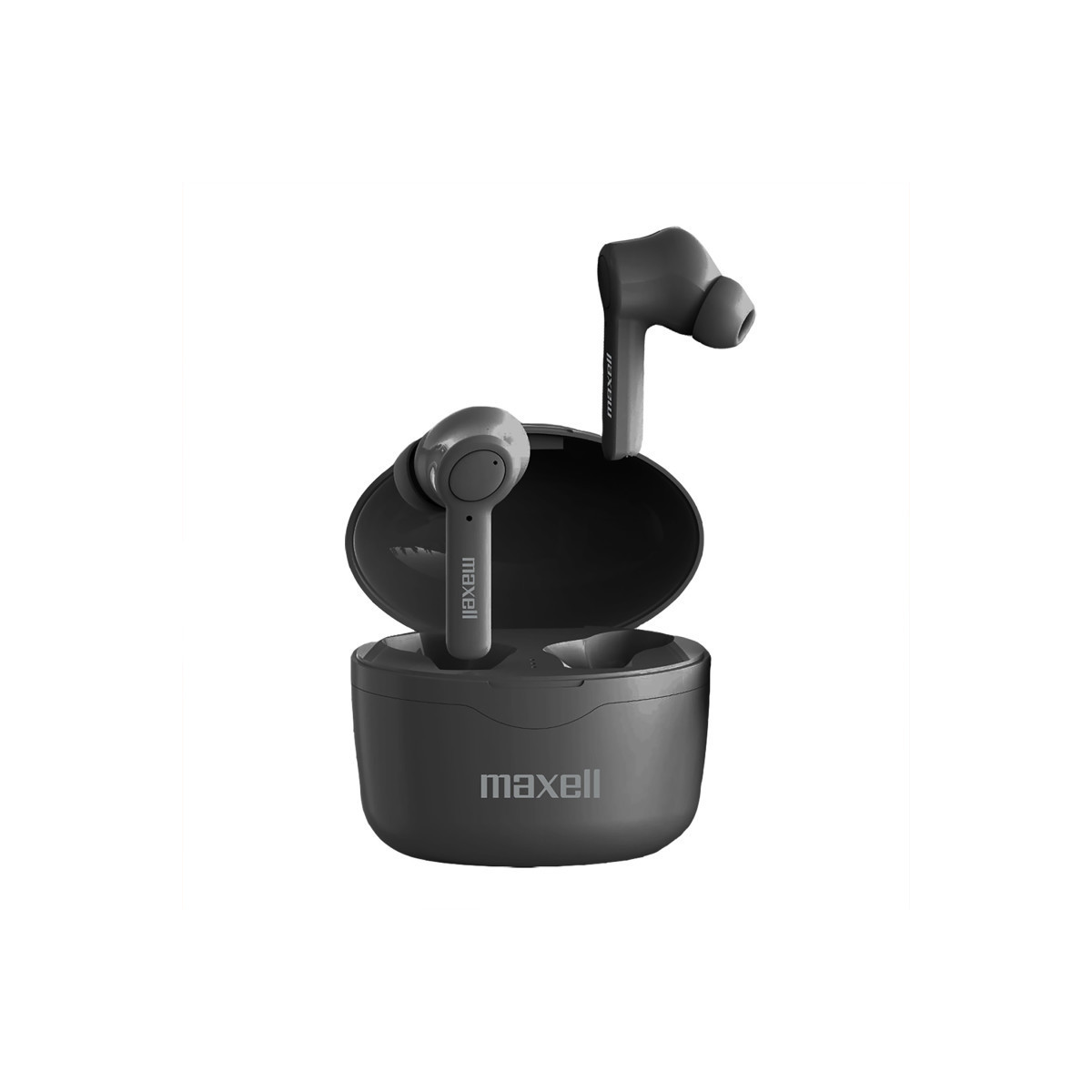 Experience powerful, full-spectrum sound with the Maxell Sync Up True Wireless Earbuds, Black. Engineered for immersive audio, these earbuds deliver heavy bass, refined treble performance, and a rich listening experience across music, podcasts, and calls. Bluetooth® 5.0 technology ensures fast pairing, efficient power use, and a reliable wireless connection, while automatic syncing between earbuds streamlines setup right out of the case. Each earbud features a single multifunction button to control volume, track navigation, play/pause, voice assistant access, and call management, keeping everything at your fingertips. With 3 hours of listening per charge and up to 12 hours total using the compact charging case, the Sync Up earbuds are built for full-day convenience.