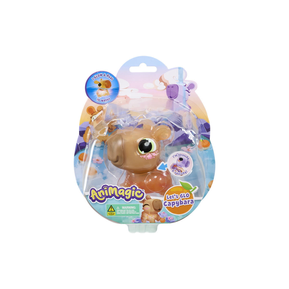 Bring sensory fun to playtime and bath time with the Let’s Glo Capybara by Animagic. This adorable, brown, stretchy, and squishy capybara is designed to provide an engaging tactile experience for kids who love fidget toys, water play, and cute animal companions. When placed in water, the Capybara floats and emits a mesmerizing glow, turning bath time or poolside fun into a magical light-up adventure. Give it a squeeze to reveal a hidden tangerine inside its belly, an extra surprise that adds to the toy’s charm and sensory fun. Soft, squeezable, and delightfully stretchy, this glowing capybara helps support calming, hands-on play while encouraging imagination and exploration. Perfect for sensory play, bath time toys, and gifts, the Let’s Glo Capybara delivers adorable companionship with extra glowing entertainment.
