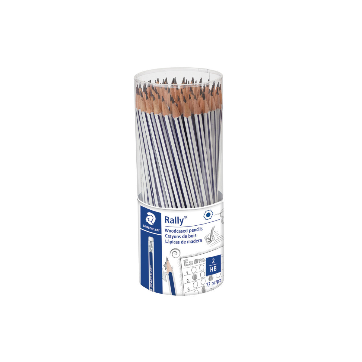 Staedtler Rally wood-cased pencil are ideal for use on standardized tests and forms, while the built-in erasers make it easy to remove mistakes. The break-resistant #2 lead and pencil construction offer long-lasting use. With a hexagonal barrel shape, these Staedtler pencils fit comfortably in hand.