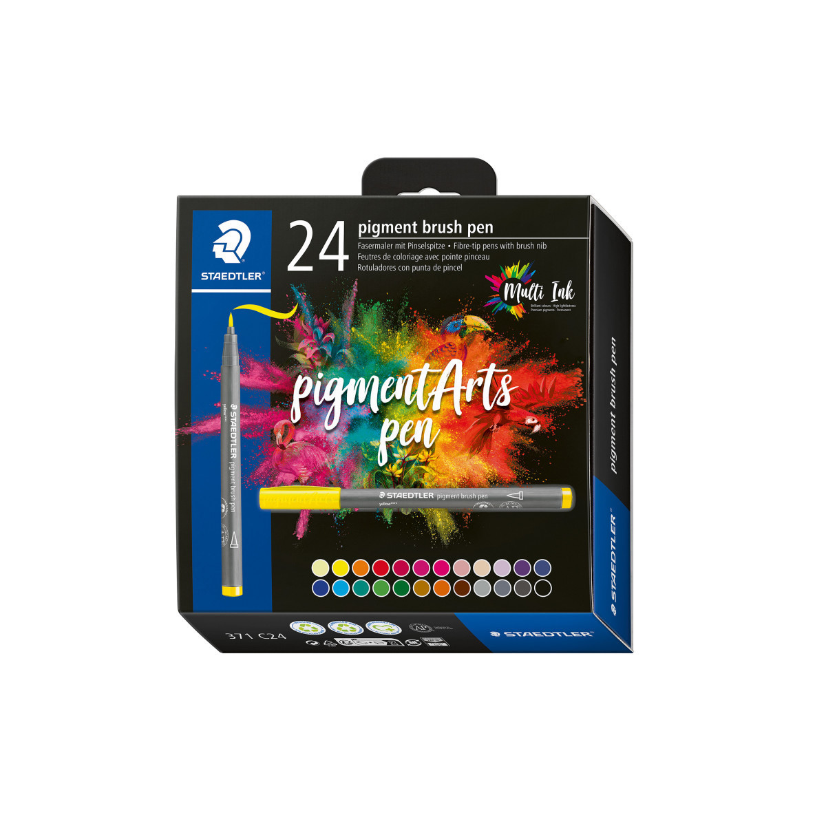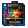 Immerse yourself in a world of brilliant and vibrant colors! This Staedtler Pigment Arts Pen Set features New Multi Ink technology with premium pigments which means that you can achieve extreme lightfastness and exceptional color brilliance on a wide range of surfaces even after years of UV exposure. It is ideal for brush lettering, drawings, illustrations, or coloring. Transform your art into vivid and long-lasting masterpieces. Get Multi creative! This set of 24 assorted colors allows you a wide range of creative choices!