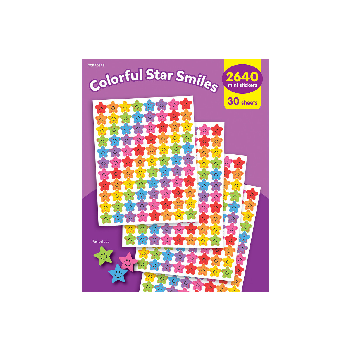 Create a star-studded classroom with these happy little stickers! Made for teachers who love the little details, these starry smiley faces are ideal for grading papers and decorating assignments. The tiny size is ideal for tracking charts, adding a fun incentive for homework, behavior, and more. Pack includes 2,640 acid-free, lignin-free, mini stickers. Pack includes 8 colorful designs. Stickers measure about 7/16" in diameter.