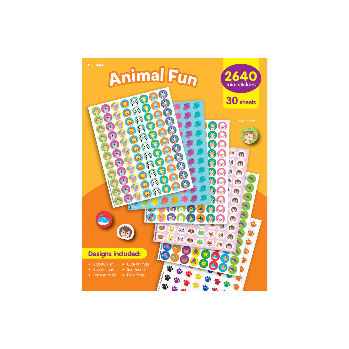 - Includes 2,640 mini stickers: bring all the fun of the animal kingdom to your classroom with this mini sticker variety pack. Each pack designs include: colorful fish, zoo animals, farm animals, cute animals, sea animals, and paw prints. Stickers measure about 7/16" in diameter.