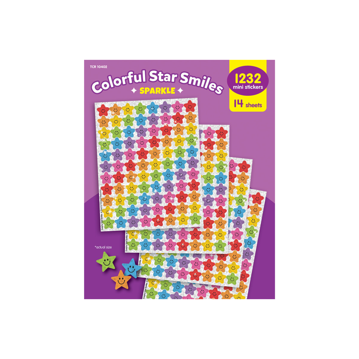 - INCLUDES 1,232 SPARKLY STICKERS: Elevate your classroom incentives with these sparkly star stickers! Each pack includes a friendly sparkly star in 8 colors. Each sticker measures about 7/16" in diameter.